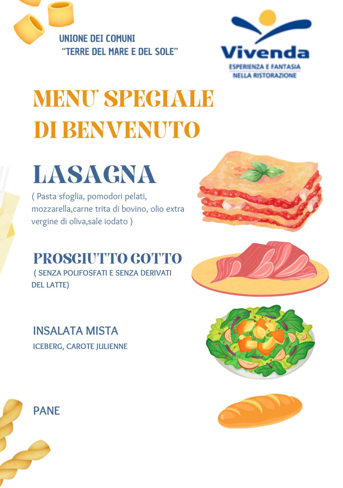 In occasione del primo giorno di refezione, vi presentiamo un menù speciale di benvenuto, pensato per accogliere con gusto e bontà i nostri piccoli studenti.