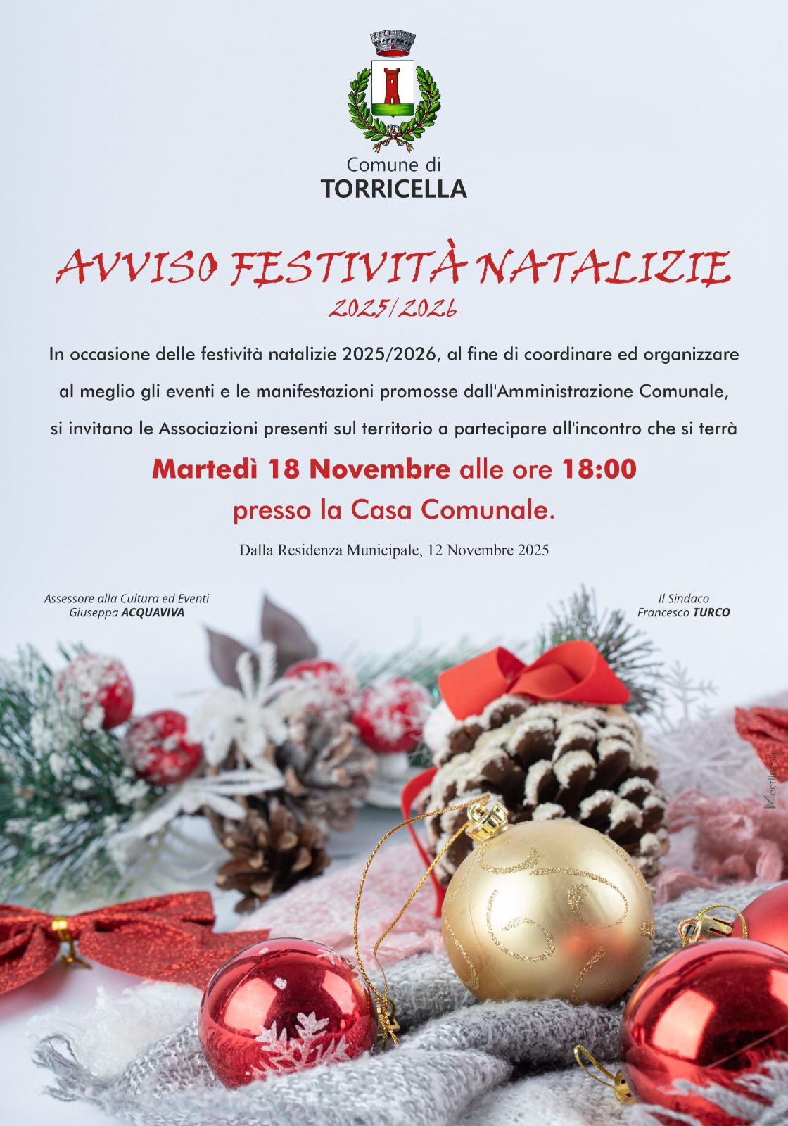Festività natalizie 2025/2026. Invito incontro con le locali associazioni.